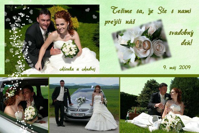 Naša svadba bola pre nás "zatiaľ" najkrajším dňom v živote. Celý deň sme si skvele užili a vychutnali..... Veľká vďaka celej rodinke zo strany nevesty aj ženícha, že sa skvele zabávali a tancovali až do rána bieleho....Ďalšia veeelikánska vďaka nevestinej kamarátke Tonke, ktorá bola jej svedkom a dievčaťom pre všetko....