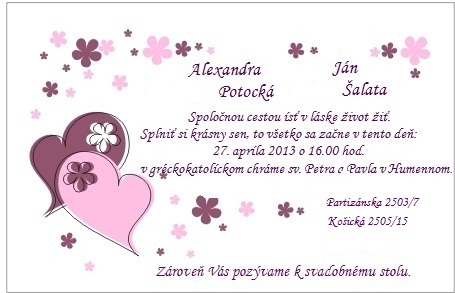 naše svadobné oznámenia (vlastná práca)