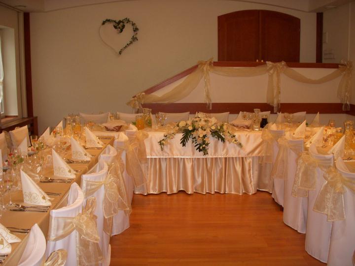 JANUÁR 2011 - vybraté menu na hostinu, farba hostiny (zlatá so saténovými obrusmi), objednané zákusky (p. Štiglicová Kráľová pri Senci)
