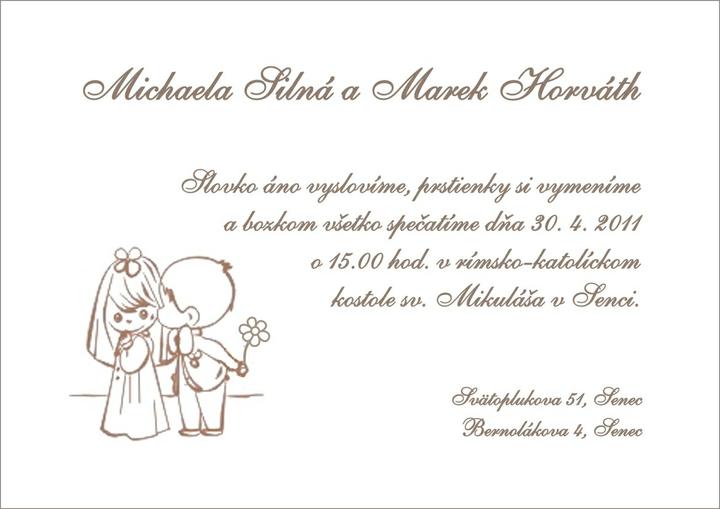 JÚL 2010 - vybavený termín v kostole, zarezervovaný kameraman (Igor Pojzl - Senec), fotograf (Gabriel Szakál - HAD-ART Senec), kaderníčka (Majka Káčerová- Bernolákovo), vizážistka (Deniska Hvorková - Senec), vybavená žiadosť na matrike
