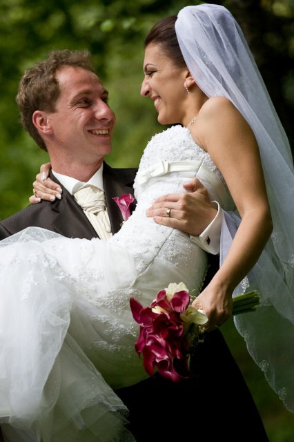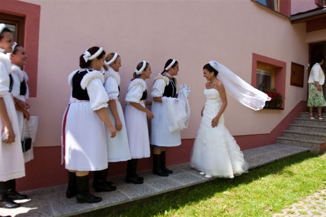 ...skutočne úžasný deň, nikdy predtým by som neverila, že si človek môže vlastnú svadbu tak užívať a vychutnať... Počasie vyšlo na 100%, až do večera bolo horúco, potom sa spustil poriadny lejak, pršalo nám šťastie. Zábava bola skvelá, hostia sa bav…