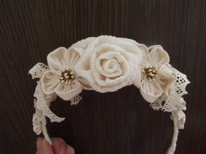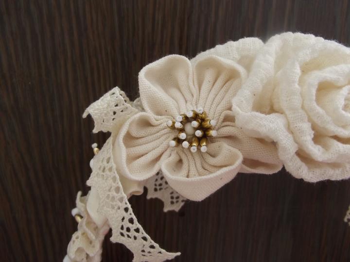 K šatám som si vytvorila aj venček. Kvetinky som vyrábala z rovnakého materiálu, ako šaty, aby všetko ladilo. Ešte, že existujú tutoriály na youtube.
