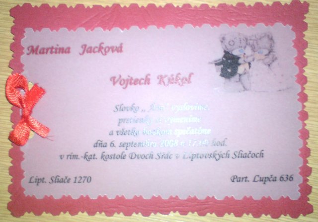 ...naše pripravy, prvy kročik už mame za sebou - 13.1.2008 naše zasnuby, dalši datum je 6.9.2008 - nas svadobny den, ak sa samozrejme nieco nezmeni...Našu svadbu budeme mať ladenú do červena, tak a uvidime koľko vecí sa nám podarí premeniť v skutočn…