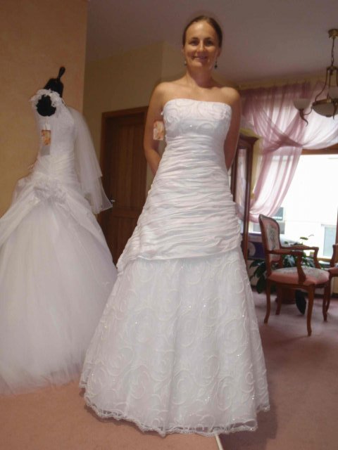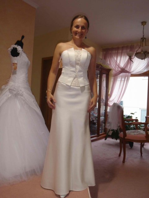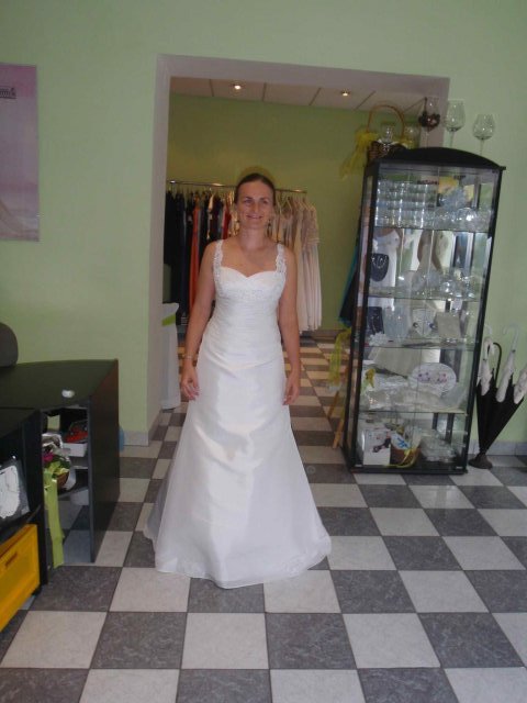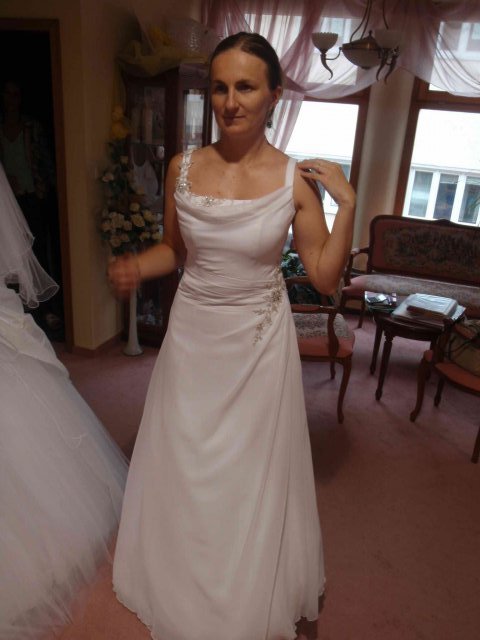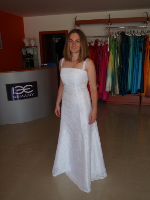 Salon Vanessa, Horny Val: prisli sme v sobotu, bez ohlasenia. Pani, ktora bola v salone behala medzi mnou a nevestami, ktore si robili uces vo vedlajsom kadernictve, ktore sa licili a ktore si vyzdvihovali saty. Bola to profesionalka, pocuvala ma a vyberala saty podla mojich slov a zaroven aj radila pri vybere farieb ( to som este nebola rozhodnuta, ze budem mat klasicky biele saty) a strihov. Mala som dojem, ze je tu dost 'inakych' siat, jednoduchsich, zaujimavych a pani sa naozaj snazi vystihnut vasu podstatu.