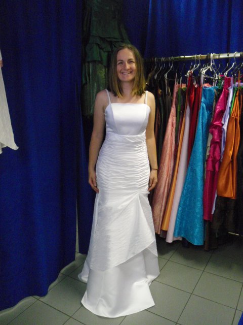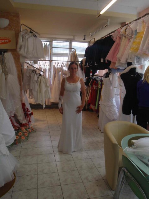 salon Dagmar, Narodna, salondagmar.sk: slecna ma nechala obzerat a vyberat si podla mojho uvazenia, zrusila mi iba saty, ktore boli male cisla. Vyber siat mi extra nepomohla, ale snazila sa dotvorit cely obraz doplkami, zavojmi, rukavickami. Tu som nasla saty, ktore sa mi pacili naj, ale pozicovne je dost vysoke.