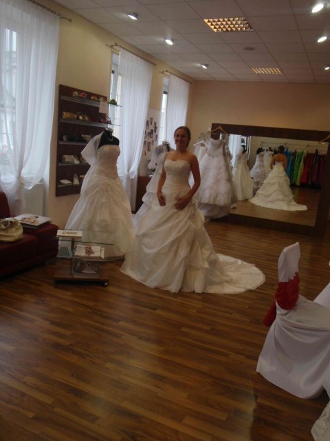 Salon Hella, Narodna, salonhella.sk: tu som sa citila najlepsie. Starala sa o nas multifinkcna slecna, ktora bola predtym dole v obchode. Najskor sa poriadne povypytovala a zacala vytahovat. Myslim, ze tu je uplne najvacsi vyber zo vsetkych salonov, jednoduche, uzke, ale aj velke sukne alebo velke vlecky. Obskakovala ma uplne dokonale, obliekala a vyzliekala ma v okamihu, podarilo sa jej presvedcit ma na skusku dalsich a dalsich siat, z ktorych boli mnohe zaujimave a naozaj mi padli.