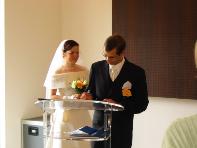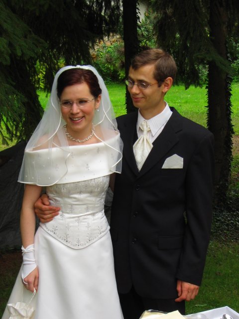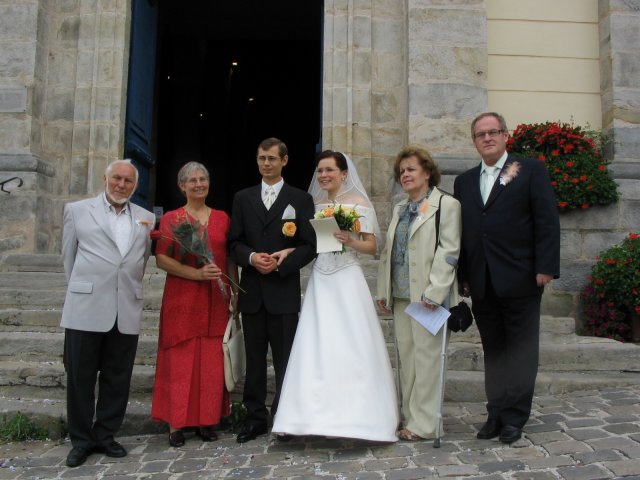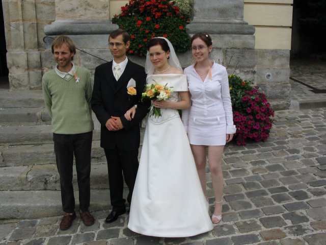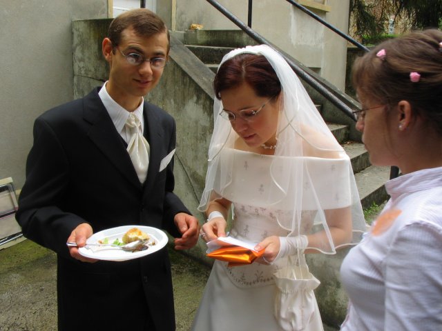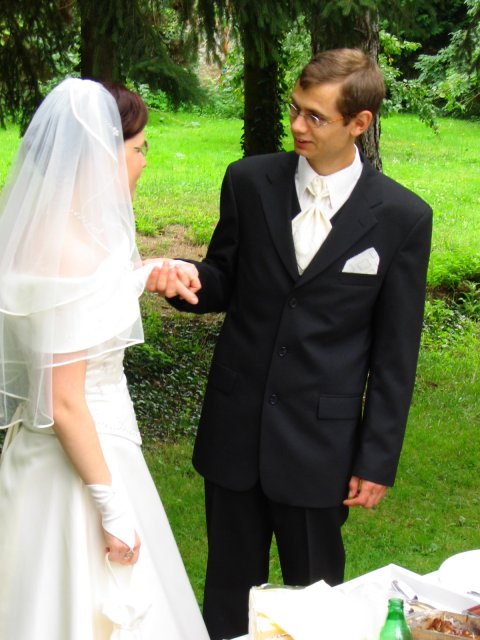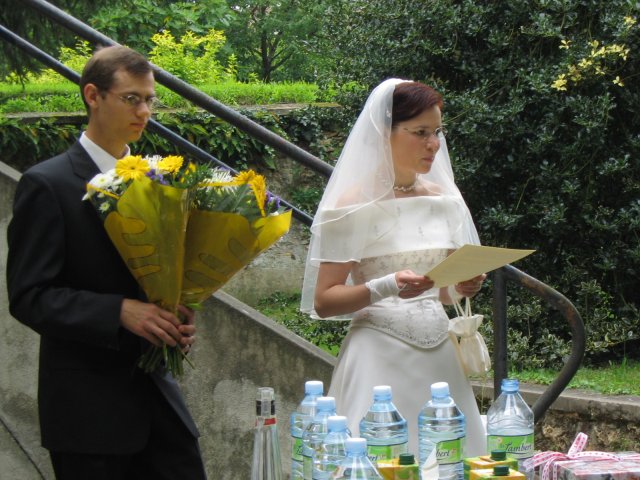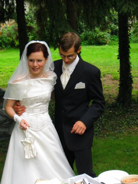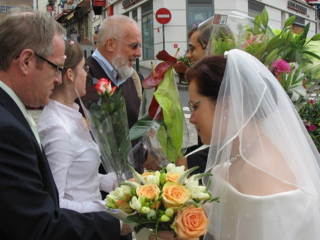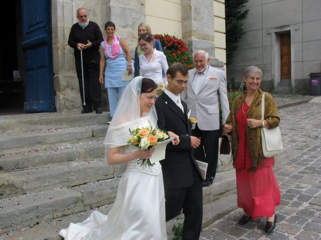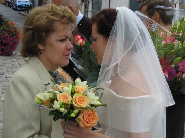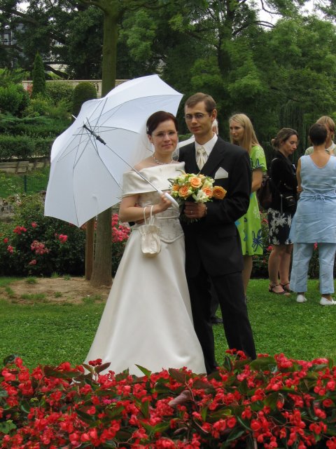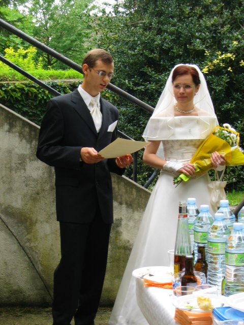 V malom francuzskom mestecku pri Parizi - v Orsay, v nasej zahradke za domcekom sme sa vsetci spolocne smiali a zabavali a slovencina sa pritom striedala s franuzstinou bezprostredne a veselo. Pamatam si moju mamicku, ktora mi este narychlo presivala gombiky na satach, lebo mi ich zabudli v salone upravit a potom, ked ma uvidela oblecenu plakala od stastia...To bol moj tato, ktory pri podakovani rodicom bol natolko dojaty, ze mu tiekli slzicky pri spomienkach na roky davne, ked som bola este malicke dievcatko...To bola moja zlatucka a najlepsia sestricka Janka, ktora zaspievala v kostoliku pre nas ten najkrajsi zalm a s radostou vsetko organizovala a pomahala nam ;-) To boli nase vzajomne sluby a vyznania v kostoliku a mnoho srdecnych okamihov v ten den. Dakujem z celeho srdca za velku pomoc mojej sestricke Janke a jej Petulkovi, mojim najdrahsim rodicom a Tebe Francois za to krasne : ¨Kym nevyschnu vsetky moria, kym slnko nerozpusti skaly a kym sa nezastavi kolobeh zivota, dovtedy patrim Tebe, laska moja.¨ Je t'aime mon amour :)