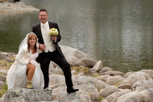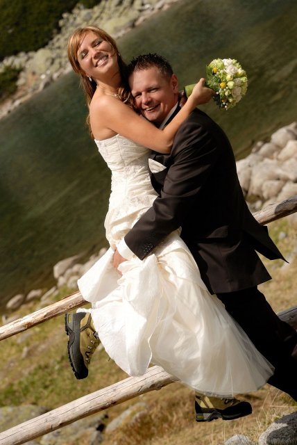 Bolo to neopísateľné krásne! Bol to náš deň, ničím a nikým sme si ho nedali pokaziť :o) Teraz už len spomíname a v srdiečku nám zostáva prijemný pocit. V môj svadobný deň som mala dvojmo srdiečko, pre môjho manžela a naše Tatry milované :o) Úžasný pocit tam hore, doporučujem, kto miluje hory :o)