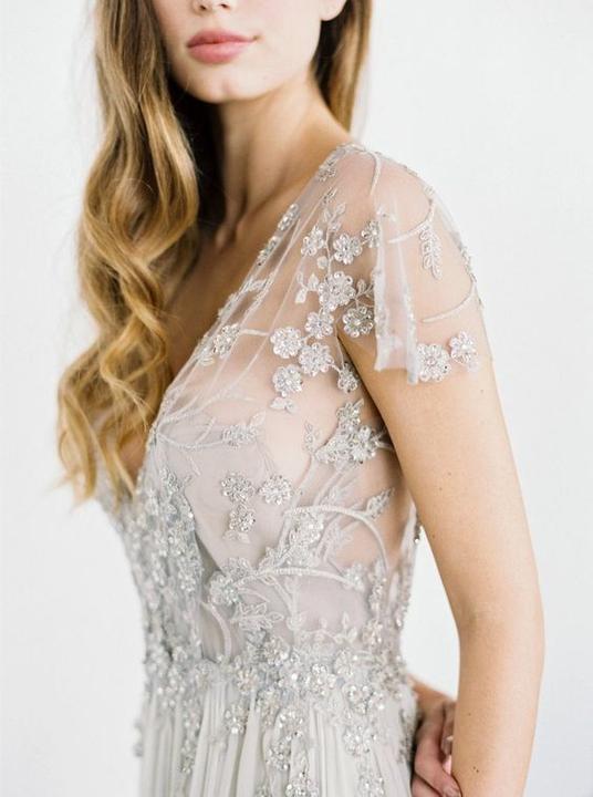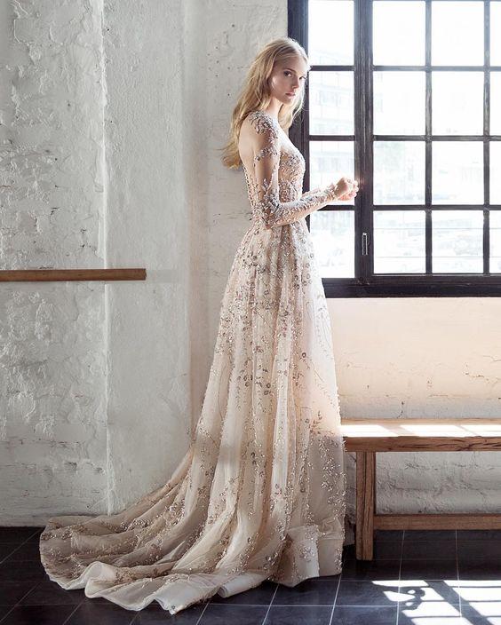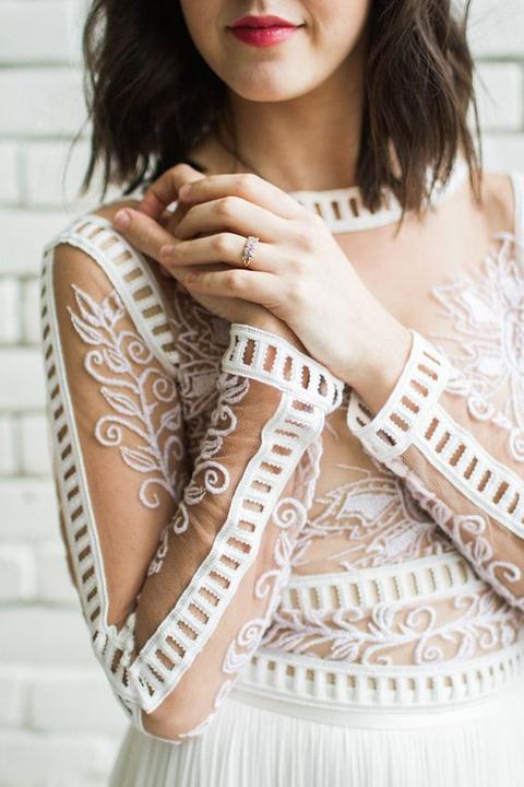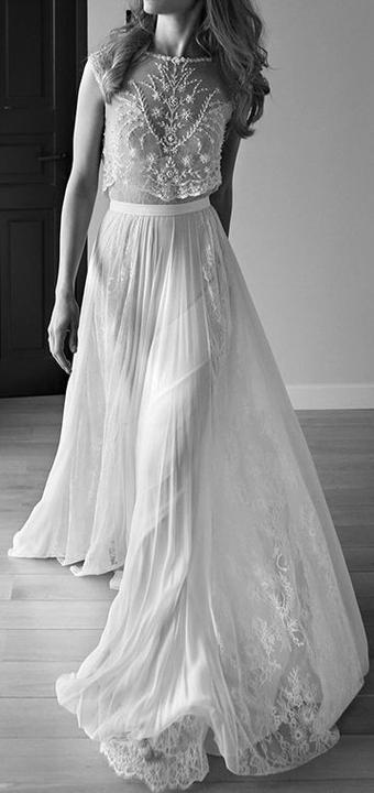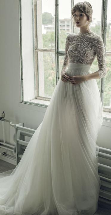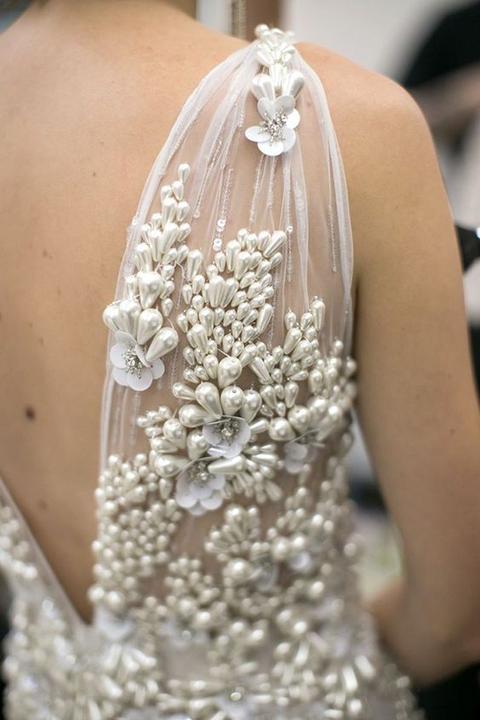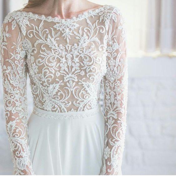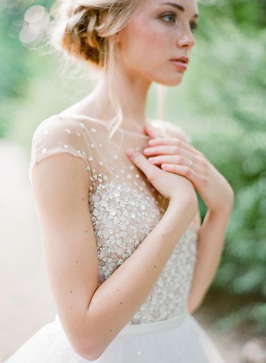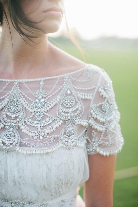 Čipky, výšivky, korálky, kamienky, jemné látky. Šaty, ku ktorým už netreba šperky, lebo nevestu dokonale zdobia ako šperk samotný.