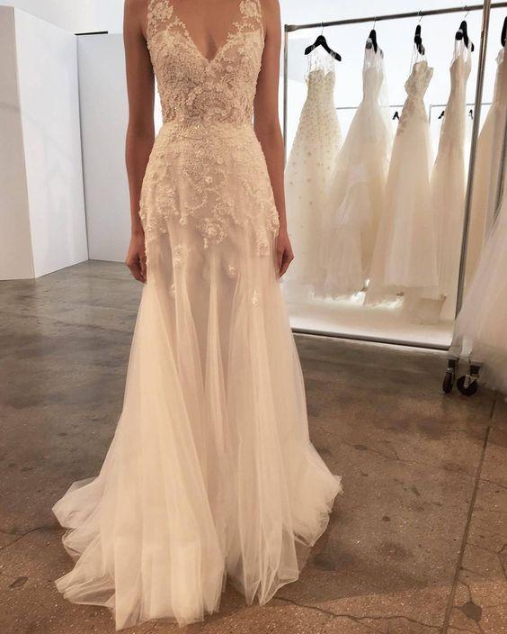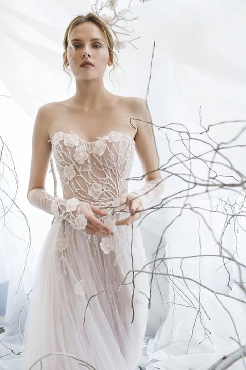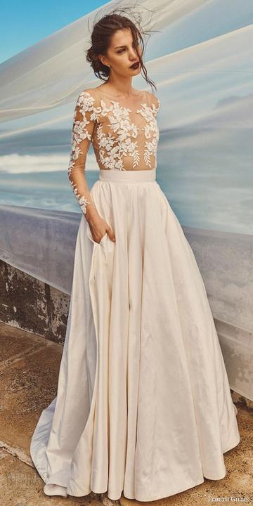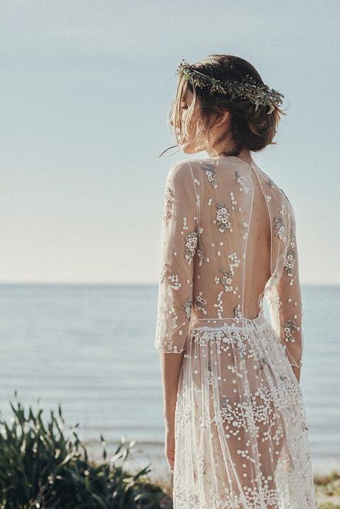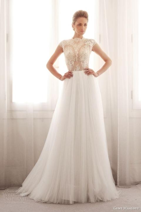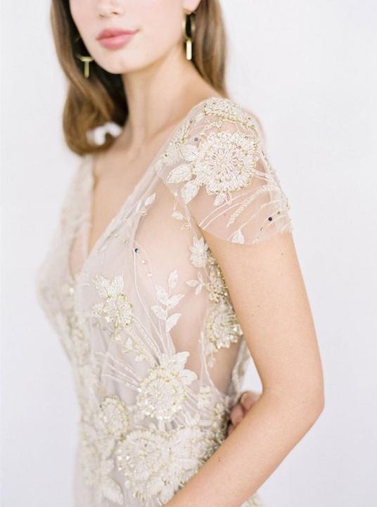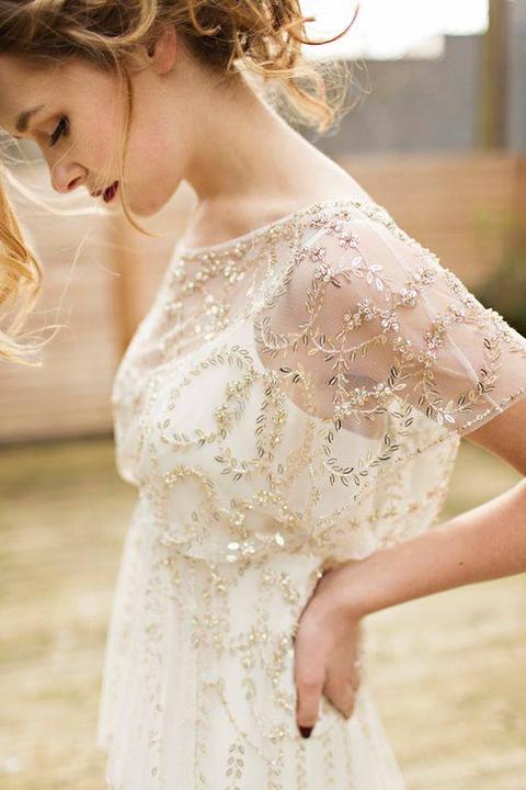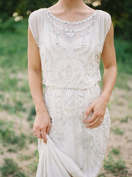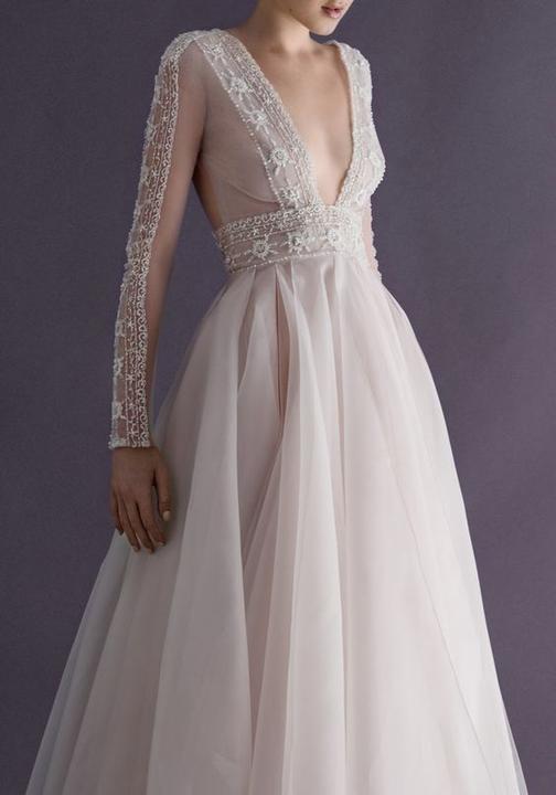 Čipky, výšivky, korálky, kamienky, jemné látky. Šaty, ku ktorým už netreba šperky, lebo nevestu dokonale zdobia ako šperk samotný.