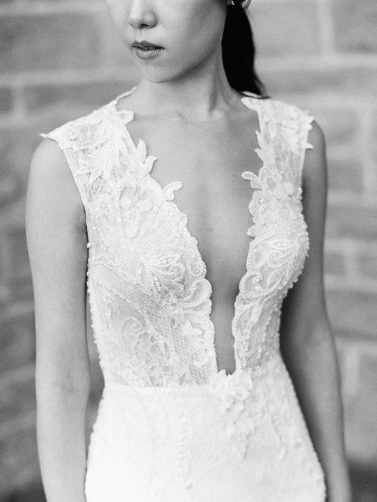 Čipky, výšivky, korálky, kamienky, jemné látky. Šaty, ku ktorým už netreba šperky, lebo nevestu dokonale zdobia ako šperk samotný.