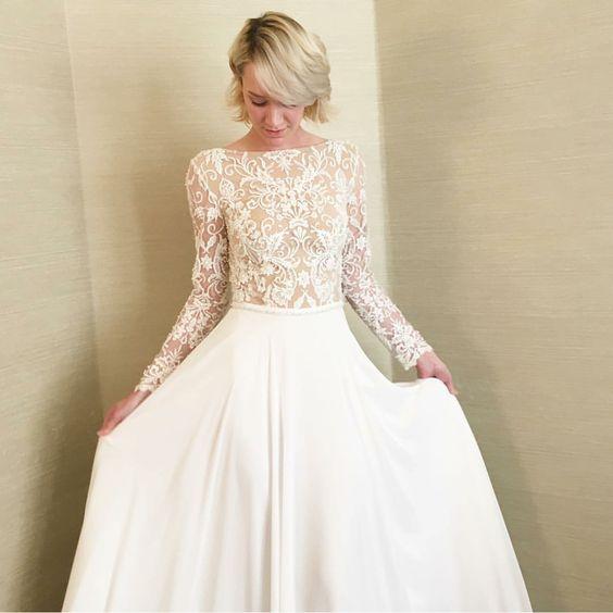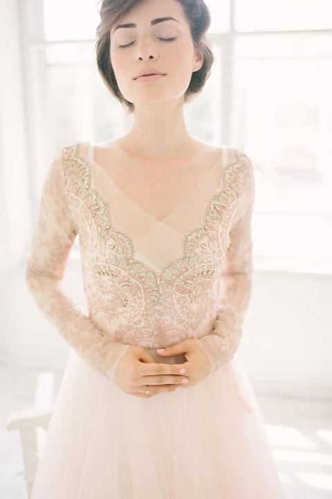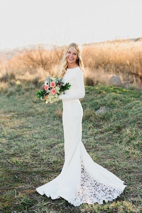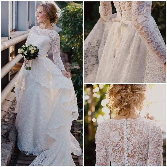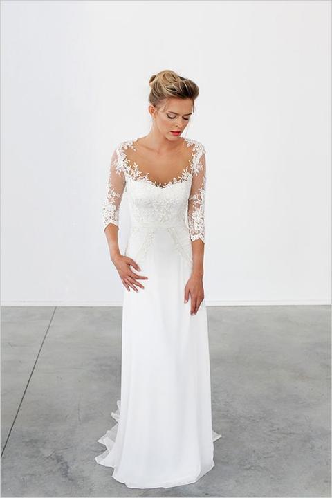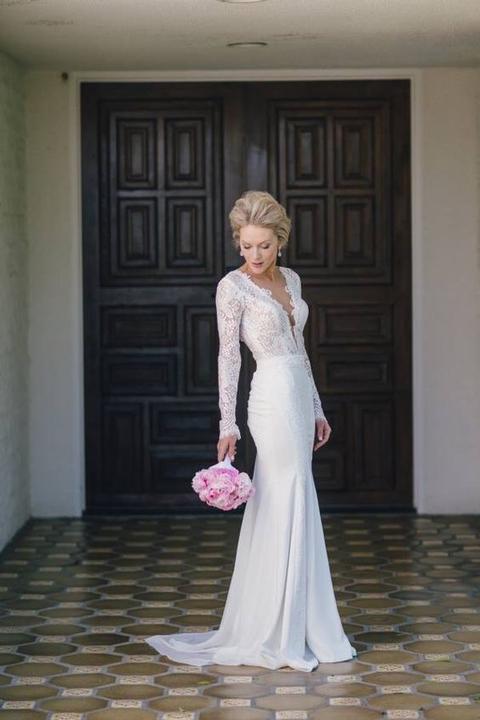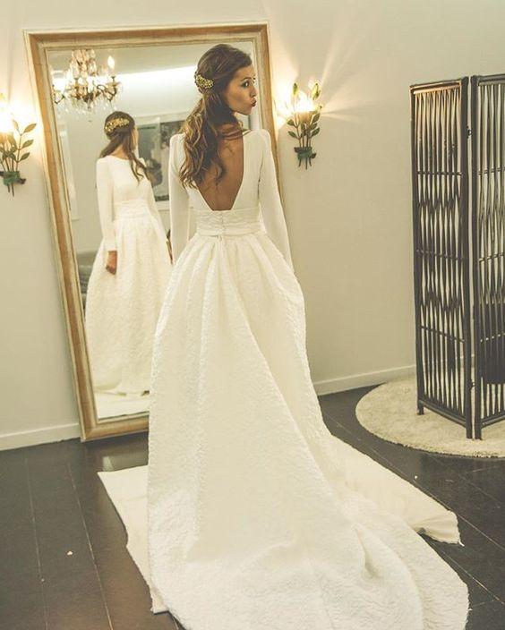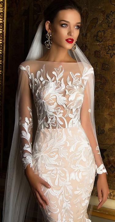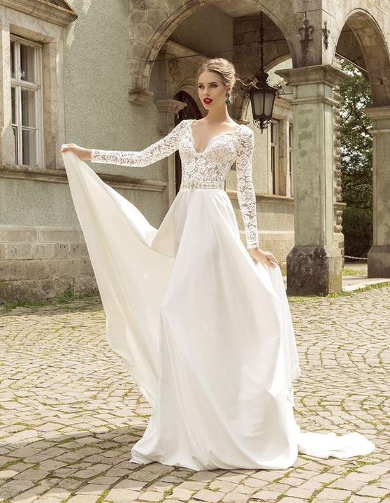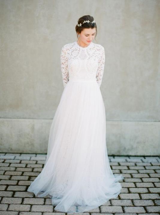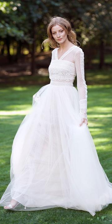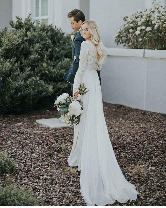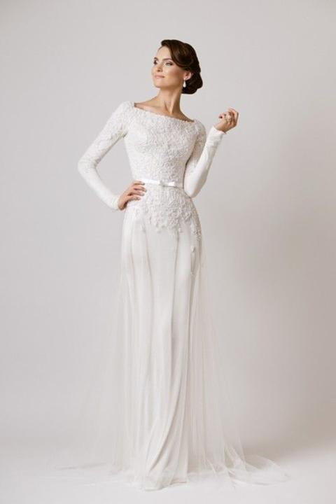Na jesenné a zimné svadby, ideálne sú svadobné šaty s dlhými alebo trojštvrťovými rukávmi.