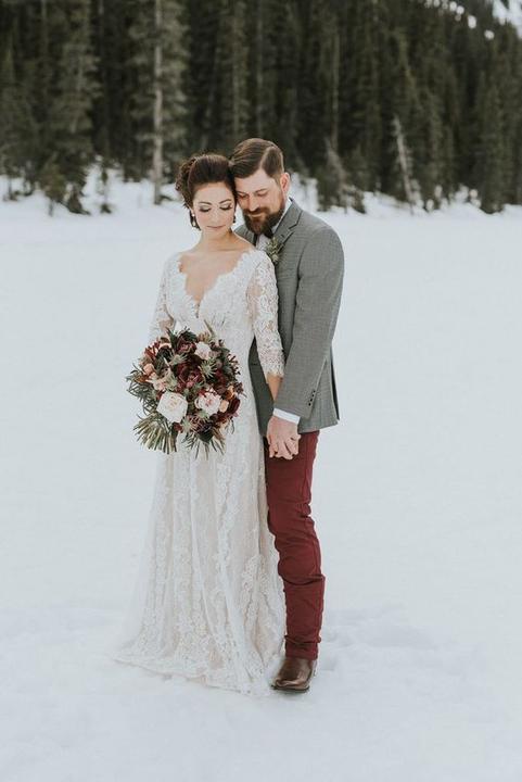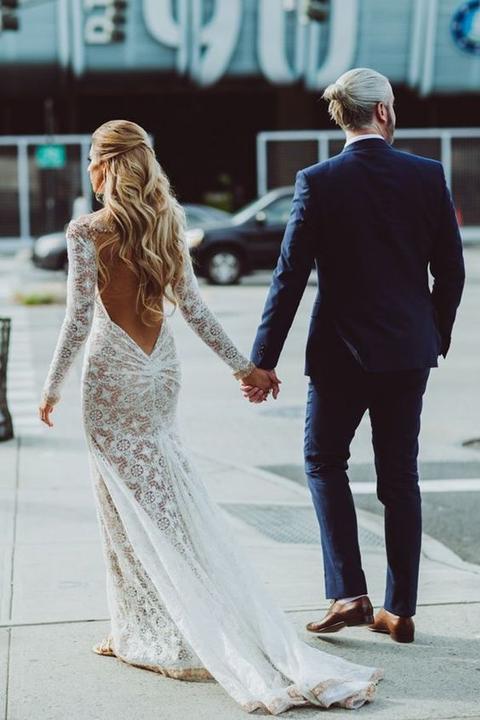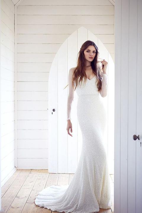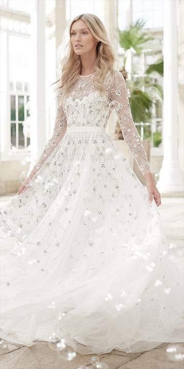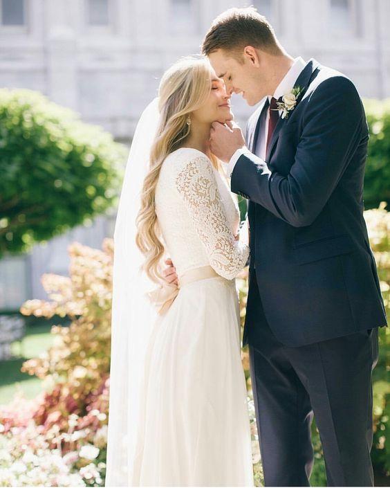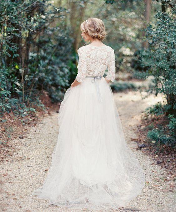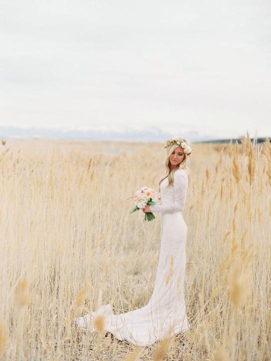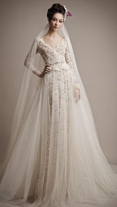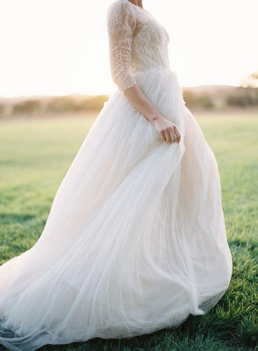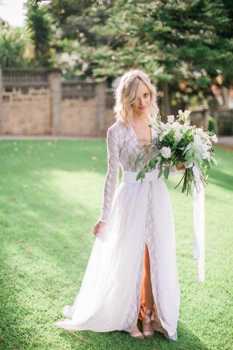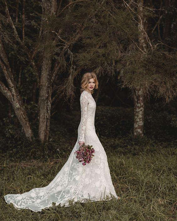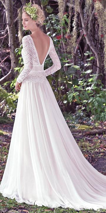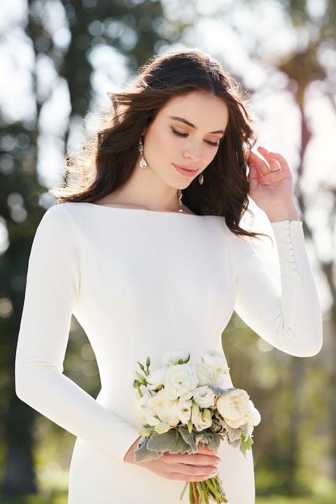 Na jesenné a zimné svadby, ideálne sú svadobné šaty s dlhými alebo trojštvrťovými rukávmi.