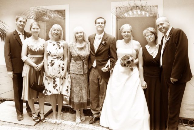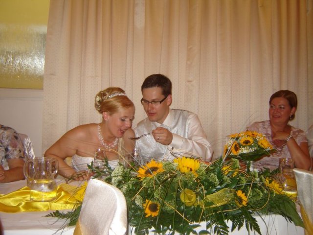 Uzasny, velmi krasny a uvolneny den... :o) aj ked rano uprsany, na obed bolo vsetko ako ma byt. Zabava trvala az do rana a mali sme tam vsetkych, ktorych sme chceli. Milo prekvapili vsetci gratulanti. Dakujeme vsetkym (hlavne rodicom a surodencom) za vsetko :o)