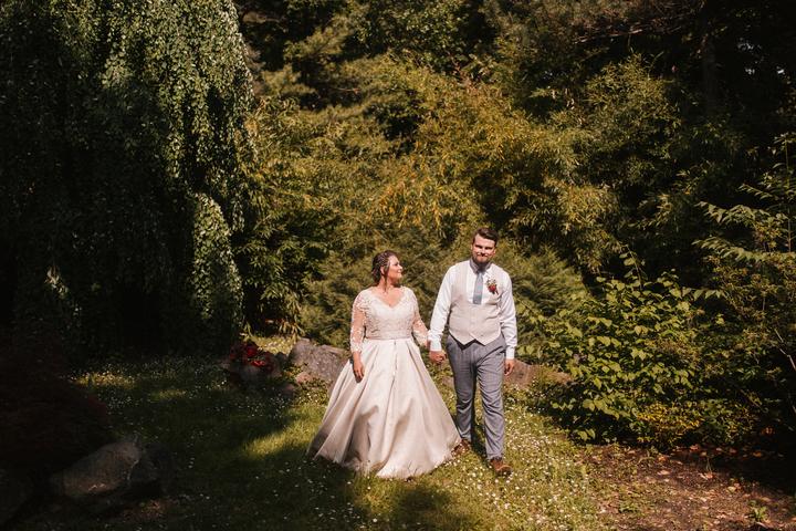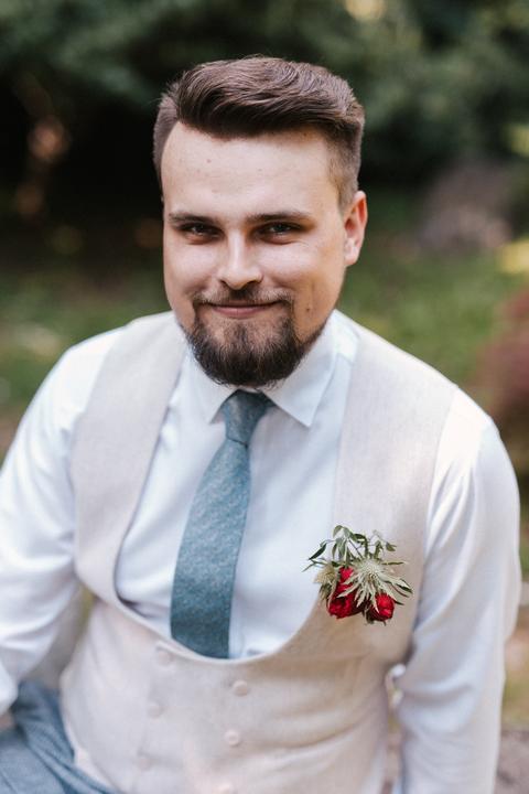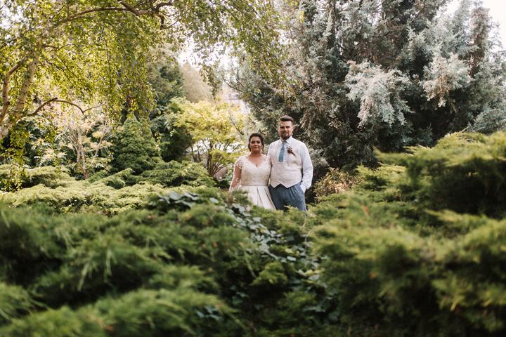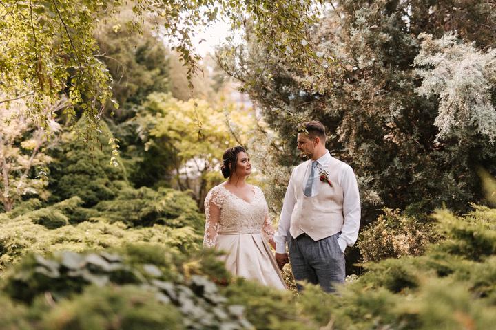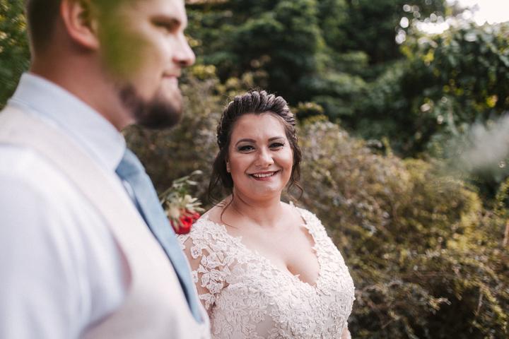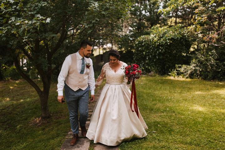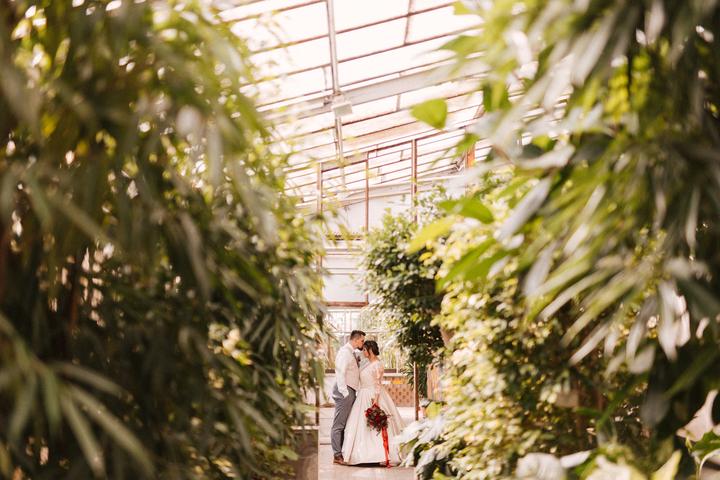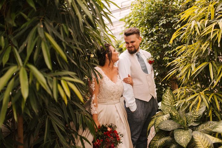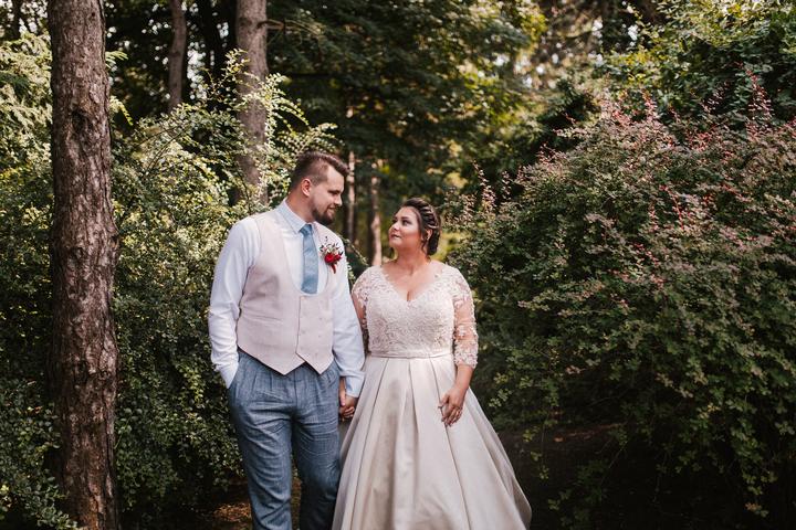 Portréty sme sa vybrali fotiť už ako manželia v pondelok po svadbe. Vyšli sme si do bratislavskej Botanickej záhrady. Do svadobného sme sa prezliekali na ulici pred benzínkou, kvalitne som dofúľala svadobné šaty a okopala sandálky, porušili sme kopu…