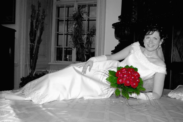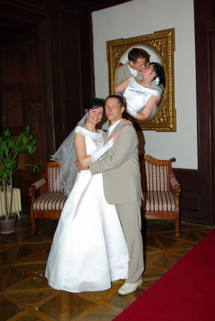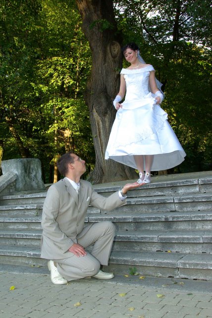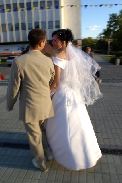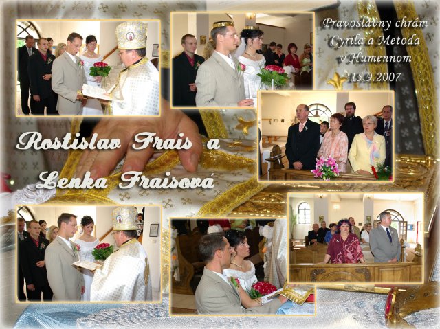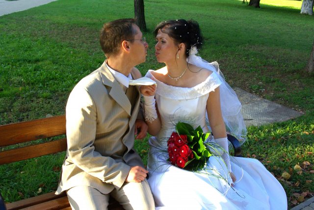 Nezabudnuteľný deň, ktorý sa dá definovať týmito slovami: rýchle dokončovanie príprav, príchod hostí, zmena počasia - slnko, dážď, odpytávanie, obrad v kostole, fotenie v parku a kaštieli a búrlivá, ráno sa končiaca zábava...