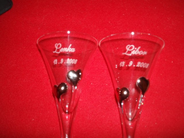 poháre - Krystal Bratislava, gravírovanie - svadobný salón Monika Blava