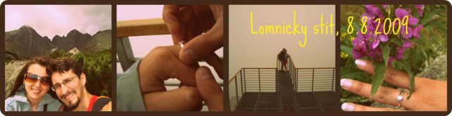 Začali sme spolu chodiť 8.8.2006. Zasnúbili sme sa 8.8.2009 na najkrajšom mieste na Slovensku - na Lomnickom Štíte. Svoje životy navždy spojíme 14.5.2011. Veeľmi sa už tešíme a prípravy si užívame :)))) Wedding-Countdowns