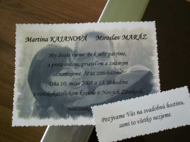 Náš veľký deň bude 10.5.2008, keď si najvzájom povieme čarovné "ÁNO".