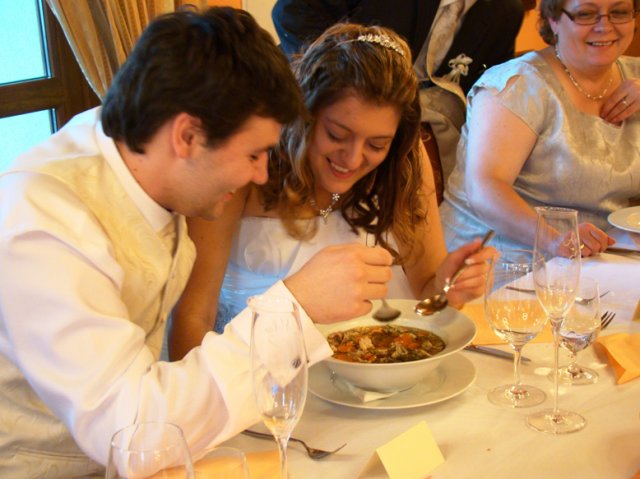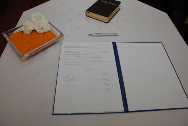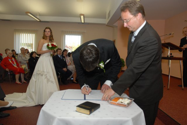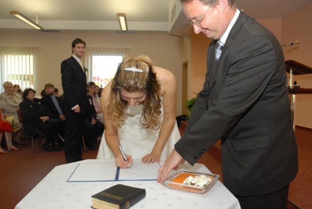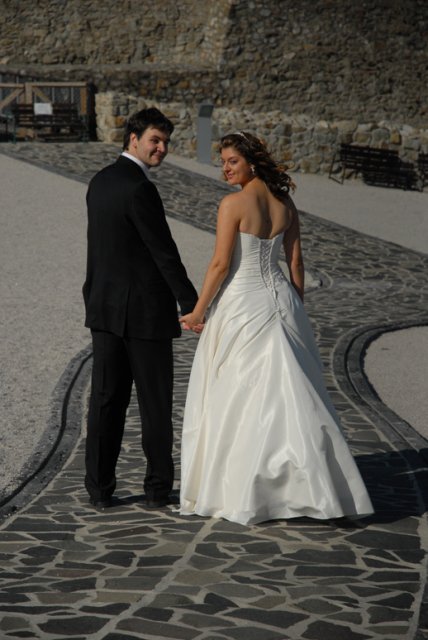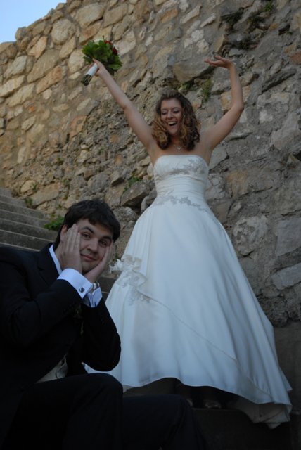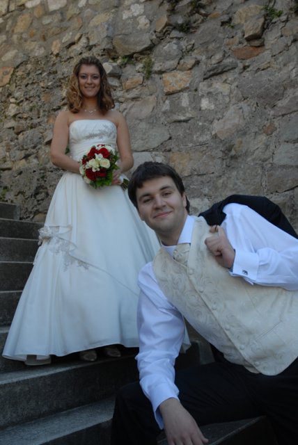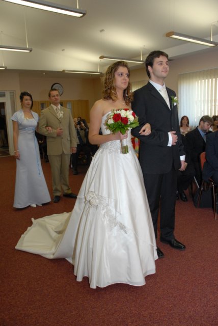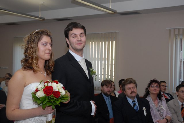 Aké to bolo? Ťažko sa hľadajú slová, ktoré by to vystihli, ale teda v skratke - v každom prípade bol neopísateľne úžasný už len preto, že bol náš. Nehovoriac o tom, aké je to krásne, keď všetko vyjde tak príjemne - počasie, kytica, kopa drobností, atmosféra a hlavne i to vytúžené Áno (aj keď u niekoho oneskorene :)) Aj preto chceme ešte raz vyjadriť jedno veľké ĎAKUJEM v prvom rade našim rodičom a Miši s Tomom :), oddávajúcemu, úradníkovi a starejšiemu v jednej osobe :), usporiadateľom a vôbec mnohým ďalším, ktorí nám pomohli s tou kopou drobností bez ktorých to nejde - ĎAKUJEME, že i taký dvaja blázni to môžu odteraz ťahať spolu :)