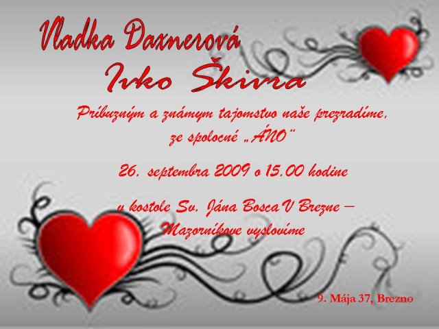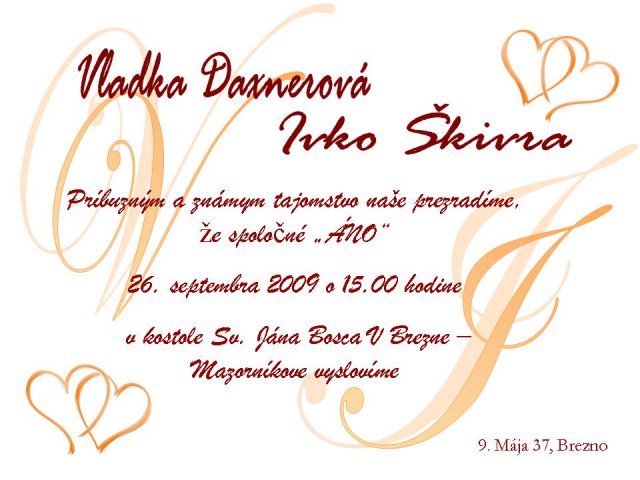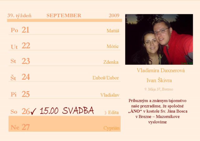 No a pred pár dňami sme ho nakoniec vybrali a malo by to byť dňa 26.9.2009 a tento dátum je už istý a tešíme sa na nho a velmi moc