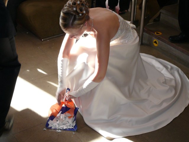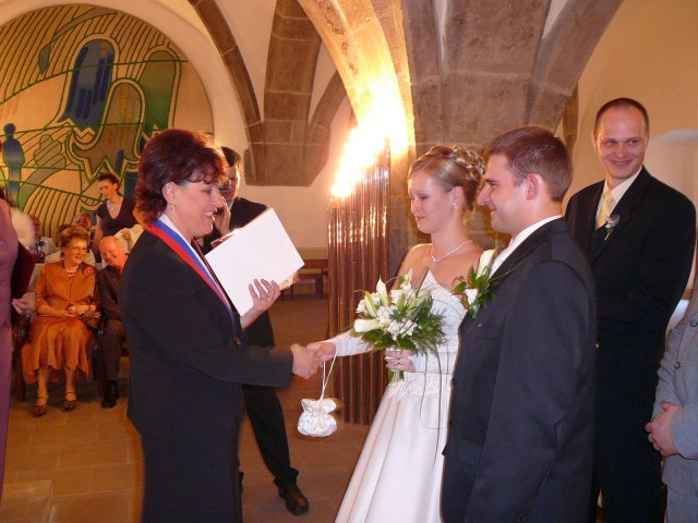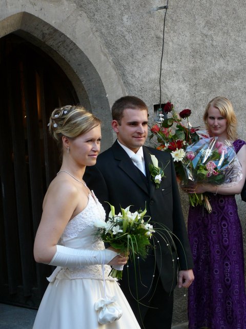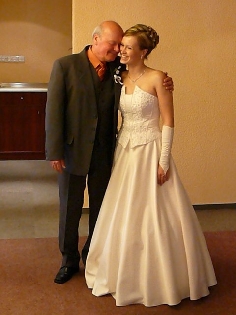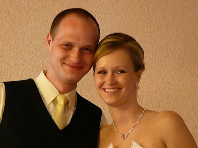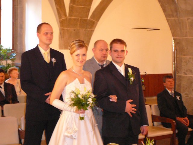 Bol to najkrajší deň môjho života. Najkrajšia nevesta s fantastickou povahou a šťastným úsmevom. Zariadili sme si to super. Ráno bola " už teraz manželka " u kaderníčky, potom som ju odviezol na make-up, ja som zatiaľ vybavil kytice, odviezol som ju domov a na 12-tu sme mali fotenie. Najskôr ateliér, potom pri Zvolenskom zámku. O tom, že sme mali fantastickú fotografku ( p. Halajová ) nebudem hovoriť ale poviem Vám, užívali sme si fotenie naplno. Mali sme nádherné počasie a super náladu. Na 15,30 hod sme mali sobáš. Starejší sa staral o všetko ako sa mal ( Tibor Kutík ), takže aj s ním sme boli veľmi spokojní. Odobierka u mňa doma prebehla v pohode a za spevu sme nasadli do áut a šup za mojou drahou. Poviem Vám, keď som ju zbadal vo dverách, zovrelo moje srdce od šťastia a vedel som, že toto je to po čom som túžil. Čo sa týka kameramana, bol zo Žiaru, Silvo Šouc a aj s ním sme boli spokojní. Nastrihal všetko tak ako sme si predstavovali takže aj výsledok stál za to.