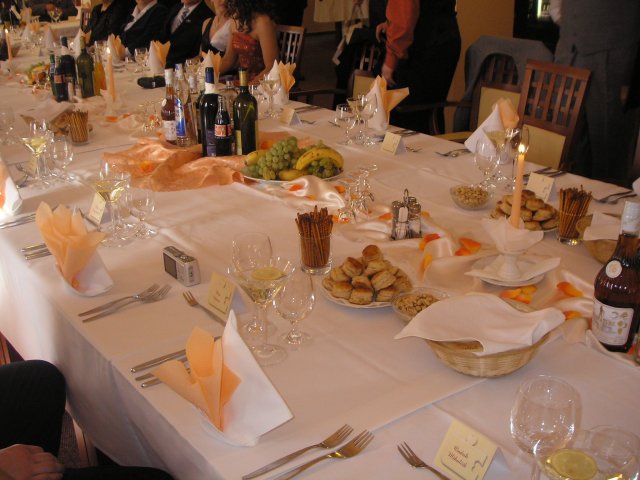 V obradnej sieni bolo síce trochu teplo ale všetci sa usmievali, aj plakali - to všetko bolo dobré znamenie, že nám to každý praje. Hostinu sme mali v divadle JGT vo Zvolene. Personál sa o nás staral ako v bavlnke, všetkého bolo dostatočne, každý sa bavil. :)