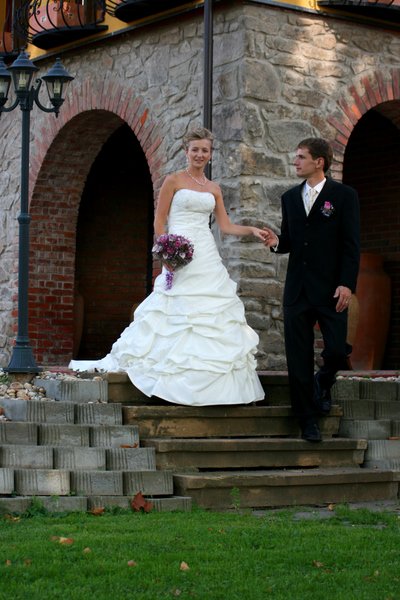 Náš svadobný deň bol úžasný. Krásne svietilo slniečko a všetko veľmi dobre dopadlo. Bol to náš najkrajší deň v živote.