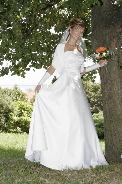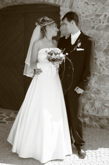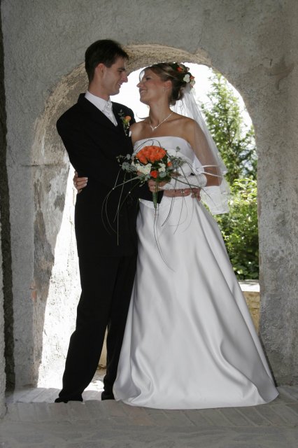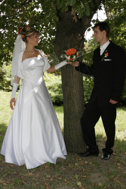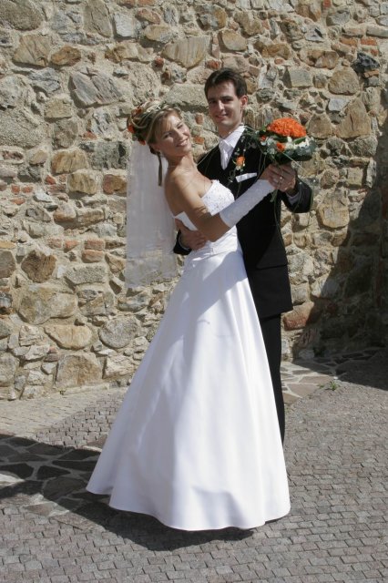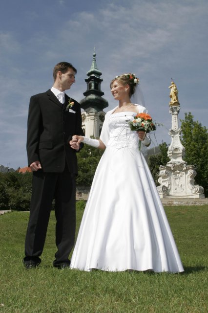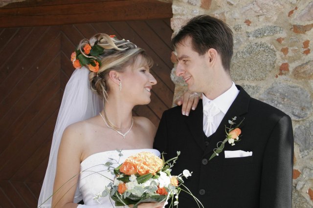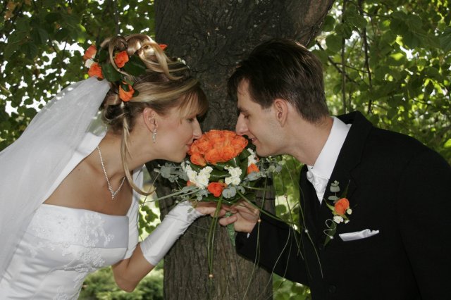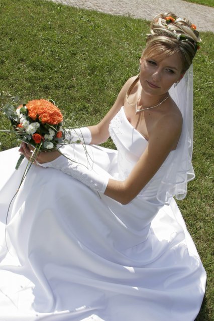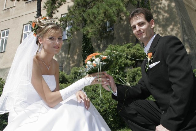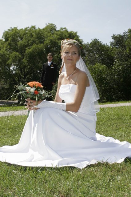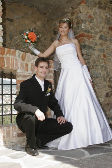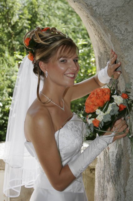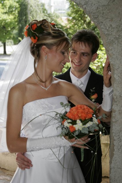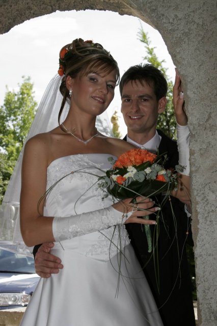 Vsetko bolo nadherne a velmi dojimave. Boli sme obaja nesmierne stastni. Ubehlo to vsak velmi rychlo. Mali sme krasne pocasie, takze fotky nam vysli nad nase ocakavania. Vsetko bolo fotene vonku. Bola som velmi spokojna s ucesom zo zivych kvetov.