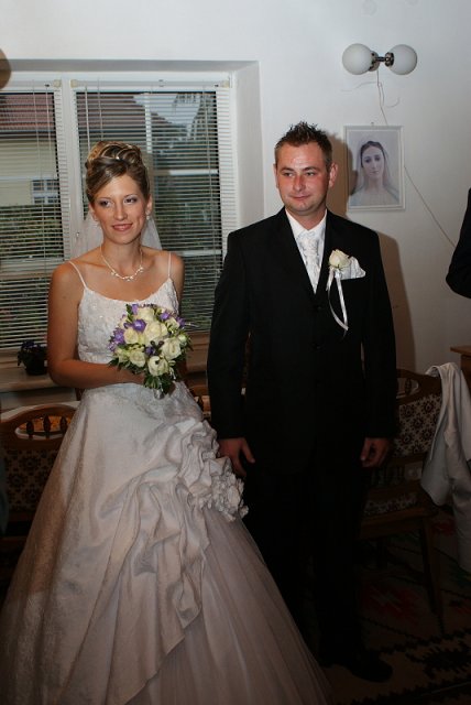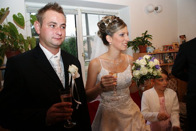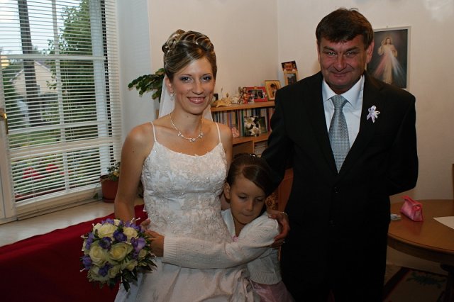 Náš svadobný deň bol sám o sebe zaujímavý - keďže nám celý deň "lialo ako z krhli"! My sme si však radosť nenechali pokaziť, brali sme to optimisticky - tak teraz už len čakáme, kedy konečne zbohatneme, keď nám toľko peňazí padalo z neba! :-)