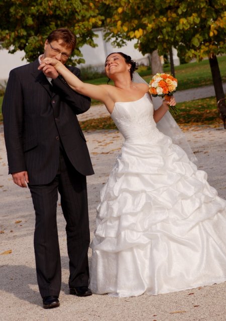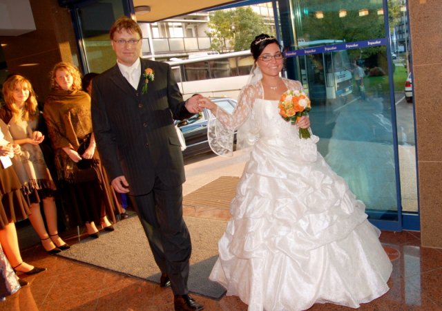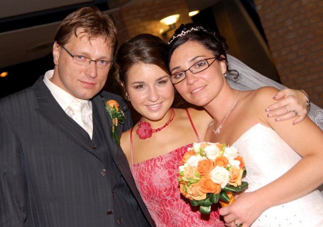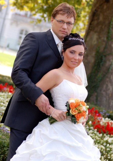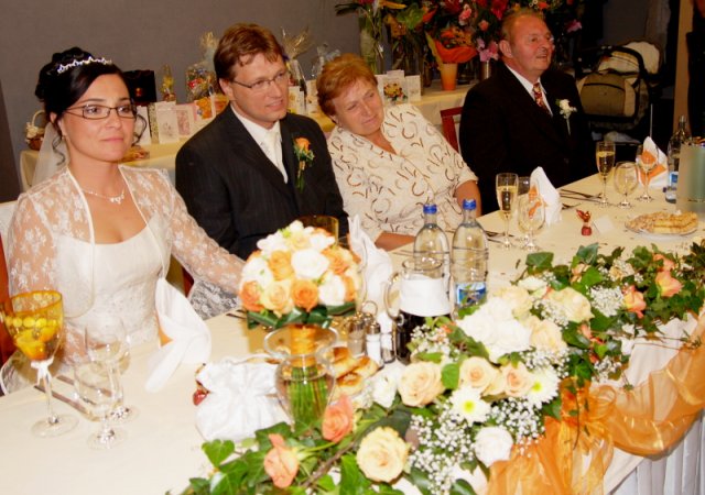 Nas svadobny den splnil nase ocakavania. Bolo krasne pocasie, prislo nam zagratulovat velmi vela ludi. Hostina trvala do rana do piatej hodiny, bolo nas 98 a vsetci sa dobre bavili.
