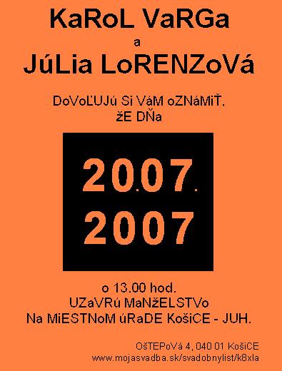 Náš sobáš by mal byť v oranžovo-čiernej kombinácii... A záhradná oslava by mala byť v oranžovej farbe a ako doplnkové by mali byť zelená a žltá...