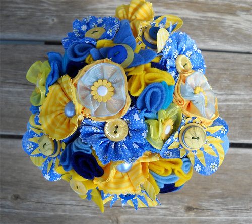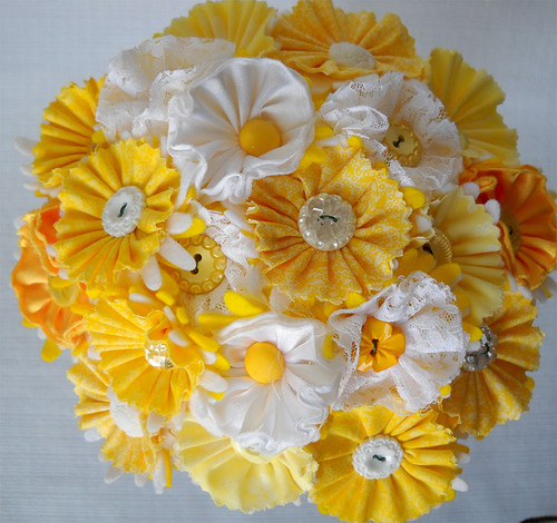 Od jednoduchej chryzantémovej, cez honosnú brošňovú som ( dočasne) skončila pri textilovo-gombíkovej. Nechcem vedieť, kam to povedie ďalej.