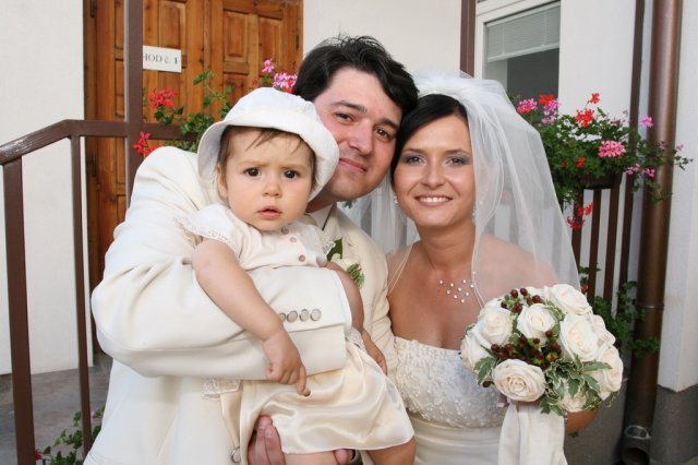 Mali sme obavy, ako to cele zvladneme, kedze svadby sa zucastnila aj nasa rocna laska Sofia, ale vdaka mojim rodicom svadba dopadla super. Obrad sa konal az o 17 hod, takze sme mali pohodove fotenie v parku v Pezinku. Sofi sa zatial u babky vyspinka…
