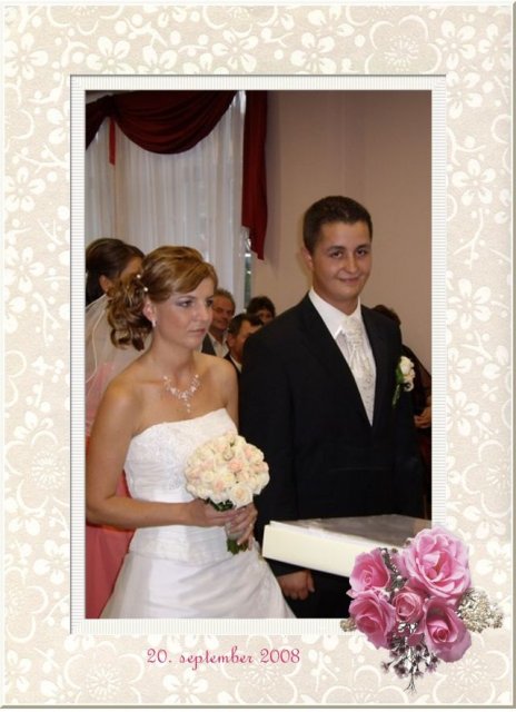 Bol najkrajším dňom Môjho bračeka a teraz už švagrinky:),svadba sa konala v Senci v penzióne Dúha,na svadbe bolo do 60 hostí ,hostina trvala do 5.00 hodiny rána. Celá svadba bola super a všetci sa bavili čo je hlavné.
