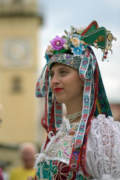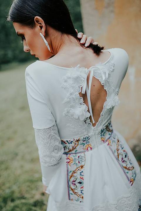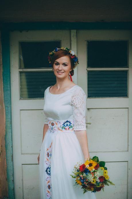 2. Nebudeme v klasickom svadobnom oblečení, ani ja nebudem v bielom, budeme mať farebné folklórne krojové oblečenie, ktoré nám budem šiť (až pri krájaní torty sa prezlečiem do bielych starodavnych krajkovaných šiat (ktore si budem sit) a ktoré budú zdobené folklórnymi stuhami, krajkami a farebnými perličkami, budem si ich sama šiť) a budem mať tradičnú slovenskú zdobenú partu na hlave (tú už som si urobila) a muž bude mať honelnícky klobúk zdobený stuhami a kvetmi :)