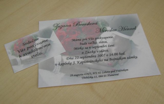 Nasa svadba sa bude konat 22. septembra 2007 teda coskoro, v kaplnke na Bojnickom zamku