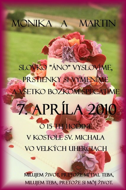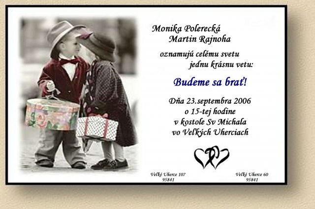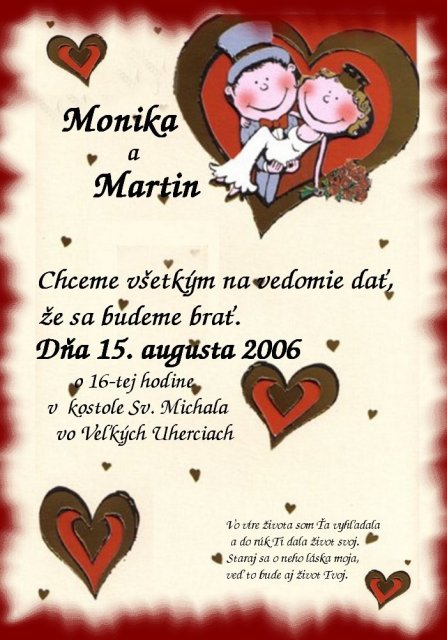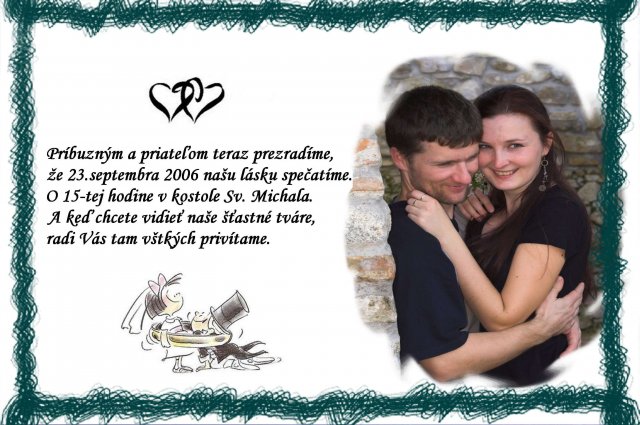 .... vsetko zacalo nasou svadbou... nieco mozno aj skor :) tu je par napadov oznameni, ktore som robila na nasu svadbu i na svadby kamaratok, mozno niekoho inspiruju:)