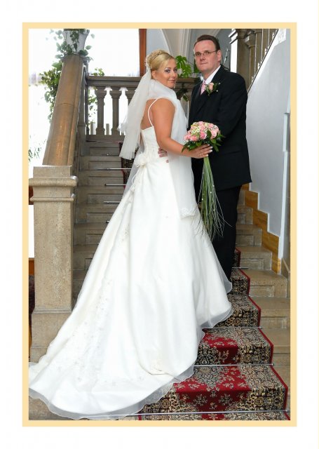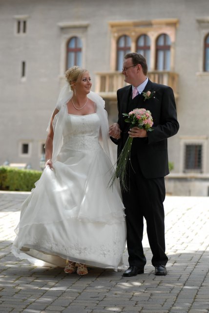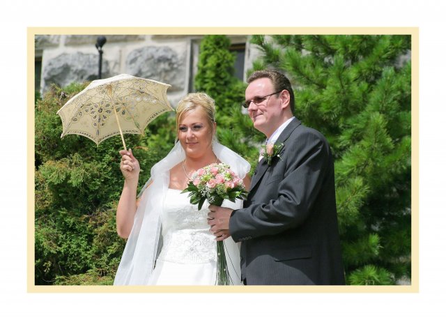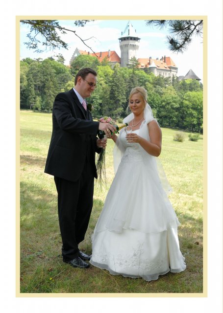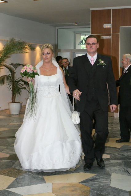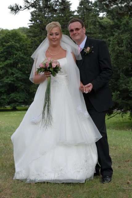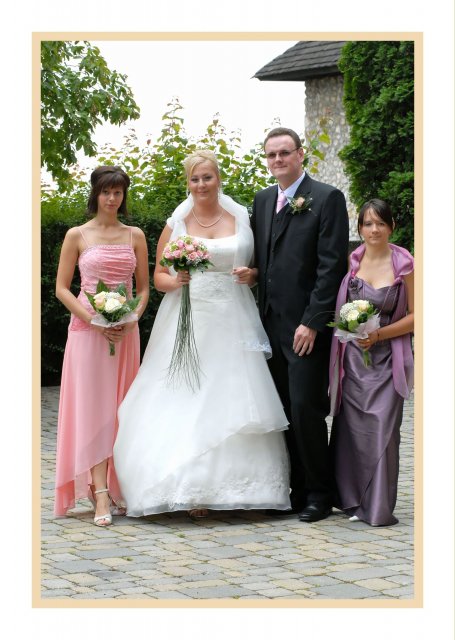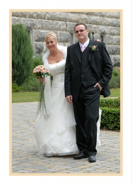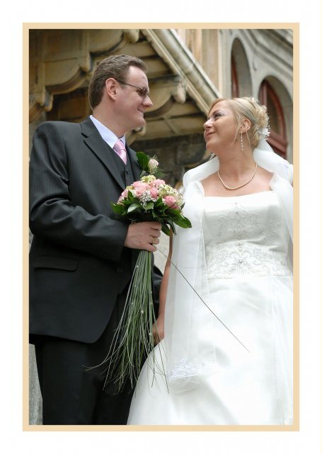 Náš svadobný deň bol ako krásna rozprávka a zároveň tento deň sa stal najkrajším dňom v našom živote.S počasím to ráno nevyzeralo ružovo, ale nakoniec vykuklo slniečko a bolo krásne slnečné počasie. Všetko bolo prekrásne, len škoda, že to tak rýchlo…