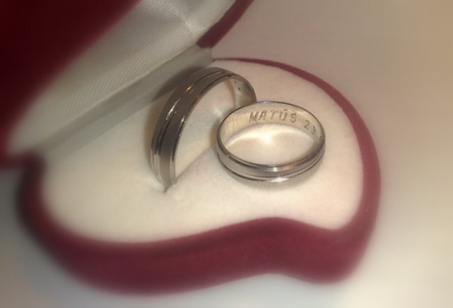 Niekedy v oktobri-novembri sme zarezervovali sálu (Krásna nad Hornádom), fotografa (skvelý Fero Kollár), kameramana (šikovný Miro Orban), zahovorená je aj cimbalová hudba, bude aj Dj (ženích :-) ). Postupne sme chystali a zháňali všetko potrebné na našu svadbu. Máme už: nevesta šaty (Prešov) aj topánky, svadobná bižutéria, popolnočné šaty+topánky, svadobné mamičky už tiež majú krásne šaty, oteckovia košele+kravaty, sobášny kríž vyrobený podľa vlastného návrhu.......... Teraz v máji sme kúpili obrúčky+vygravírované naše mená a dátum svadby (zlatníctvo Leo Gold), ženích už má krásnu bielu vestu+viazanku, taktiež sme dostali svadobné poháre od tety. Dohodli sme aj violončelistu do kostola, aj hudobný sprievod do kostola. Máme už aj poháre na prípitok. Pomalicky začíname vyrábať menovky.Ženích už má oblek aj topánky, prichystané veci na výzdovu aút, domu. Dojednané kvety na autíčko aj do kostola.