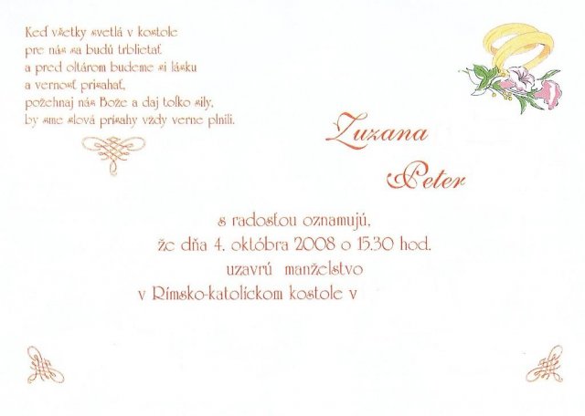 pomaly, ale isto sa blíži náš deň "D" Už sa ho nevieme dočkať. Prepáčte za coppy, ale páčia sa mi niektoré fotky, tak som si dovolila, ak Vám to vadí, napíšte, vymažem... Už máme všetko, keďže náš deň "D" sa blíži kozmickou rýchlosťou...