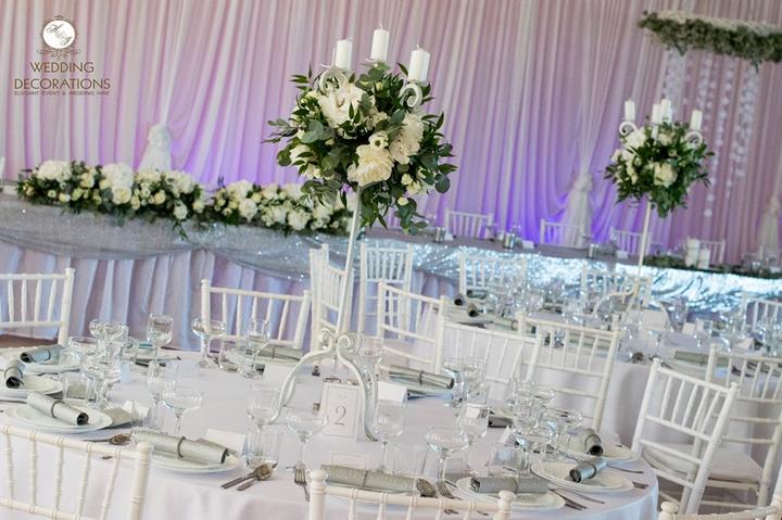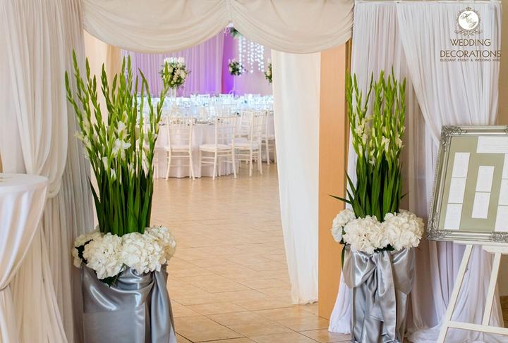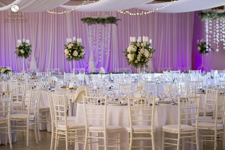 Opäť svadobná dekorácia a v KD v Kútnikoch. Tentokrát bola stropná dekorácia umiestnená pozdĺž sály, farebné steny sme opäť prekryli látkovou stenou ktoré tentokrát osvetľovalo led osvetlenie. Svadobná hostina pre 170 osôb bola riešená na žiadosť ml…
