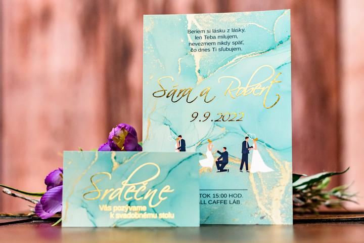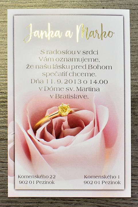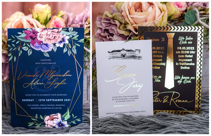 Svadobné oznámenia s metalickou studenou razbou.