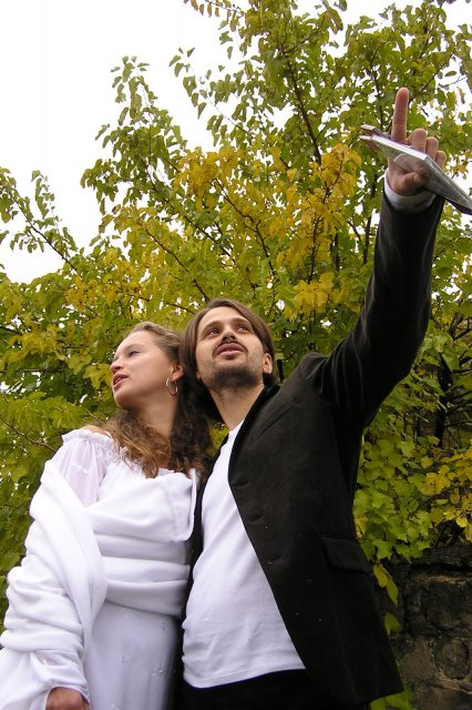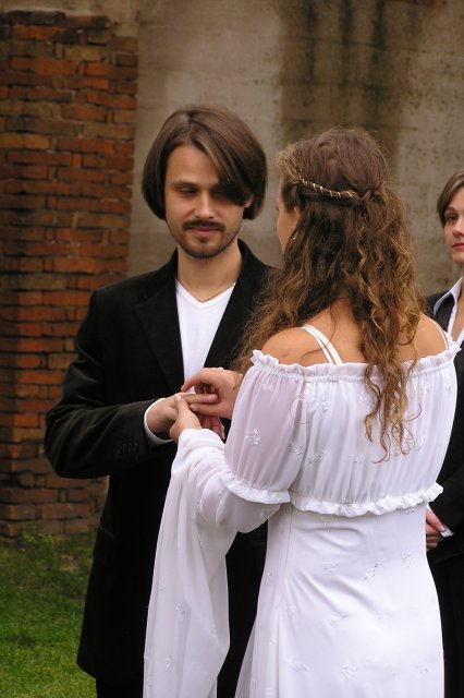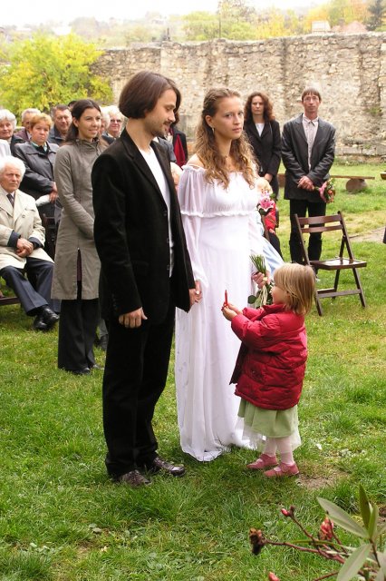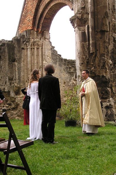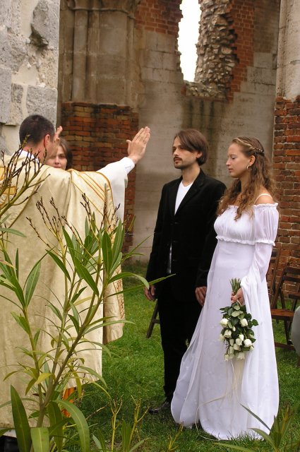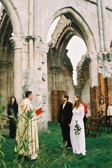 O svadbe sme sa rozhodli začiatkom augusta. Koncom augusta sme si mysleli, že asi je už na čase plánovať si niečo, keď to nechceme mať v zime. Keďže na povolenie sme museli čakať 30 dní /ruiny kostola sú historickou pamiatkou/, odišli sme na *svadobnú cestu* okolo polovičky Eourópy. Keď sme sa vrátili, mali sme povolenie a 3 týždne na prípravy svadby... a na ukončenie nového bytu.
