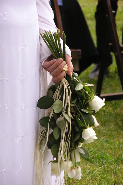 4 dni pred svadbou, v stredu, sme dokončili a upratali nový byt, štvrtok sme kúpili oblek pre ženýcha a pre mňa sme scháňali 25ks bielych ruží /nakoniec som mala iba 18/, v piatok o 11tej sme sa brali na Slovensku a celé poobede som varila. Večer sme išli k mníchovi do Zsámbéku na pohár portského vína, ale o polnoci sme už boli doma. Vetedy môj milý začal vliecť prstene z korálkov /ktoré sa po sobáši rozpadli, ale pozostatky ešte stále máme/. Hoci sme v sobotu vstávali o 8mej, na nič sme nemali čas. O 10tej som ešte nebola oblečená, nemala som upravené vlasy a nemala som make-up, ženích prave natakoval a umyl auto, dal si sprchu, ale o 11tej sme už boli pripravený na cestu zo Štúrova. Od 11.30 sme absolvovali sobáš v Zsámbéhu, od 13.30 recepciu v Štúrove a od 19.30 party s priateľmi v Bratislave. Inak super a plný zážitkov... ale závidím babám ktorý prežili *naozajstné* prípravy k sobášu.