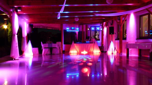 ahoj. robim to v ramci ceny. mam 10ks led reflektorov ovladanych z dmx pultu. zvycajne salu nasvecujem podla farby vyzdoby. :)