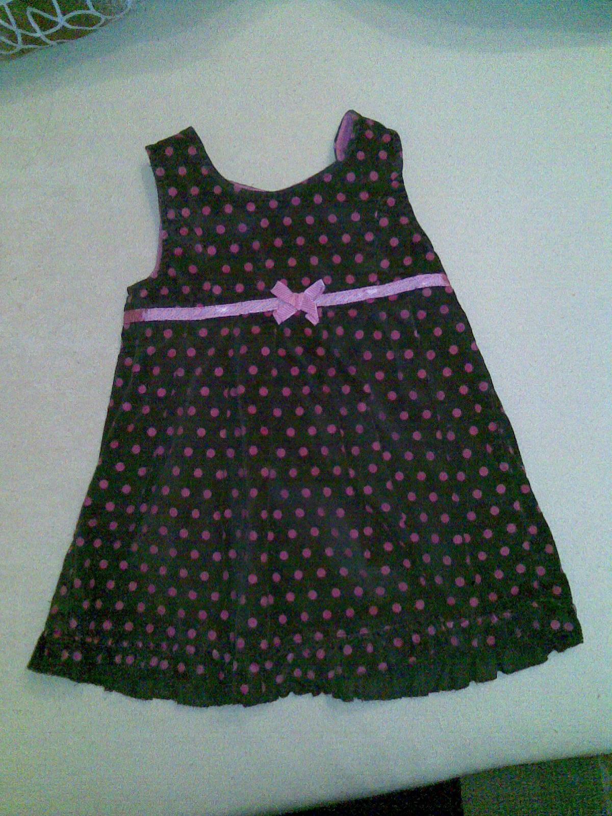 Minule som spomínala že Mimi nemá šaty na svadbu - tak už má.Bola som v sekáčiku a vyšli ma rovných 1.5€ ako nové, bez známok používania :-p na 1x oblečenie stačí. Hnedé s ružovými bodkami. (napadlo ma to pri pohľade na bodkované bodynko :-D :-N )
