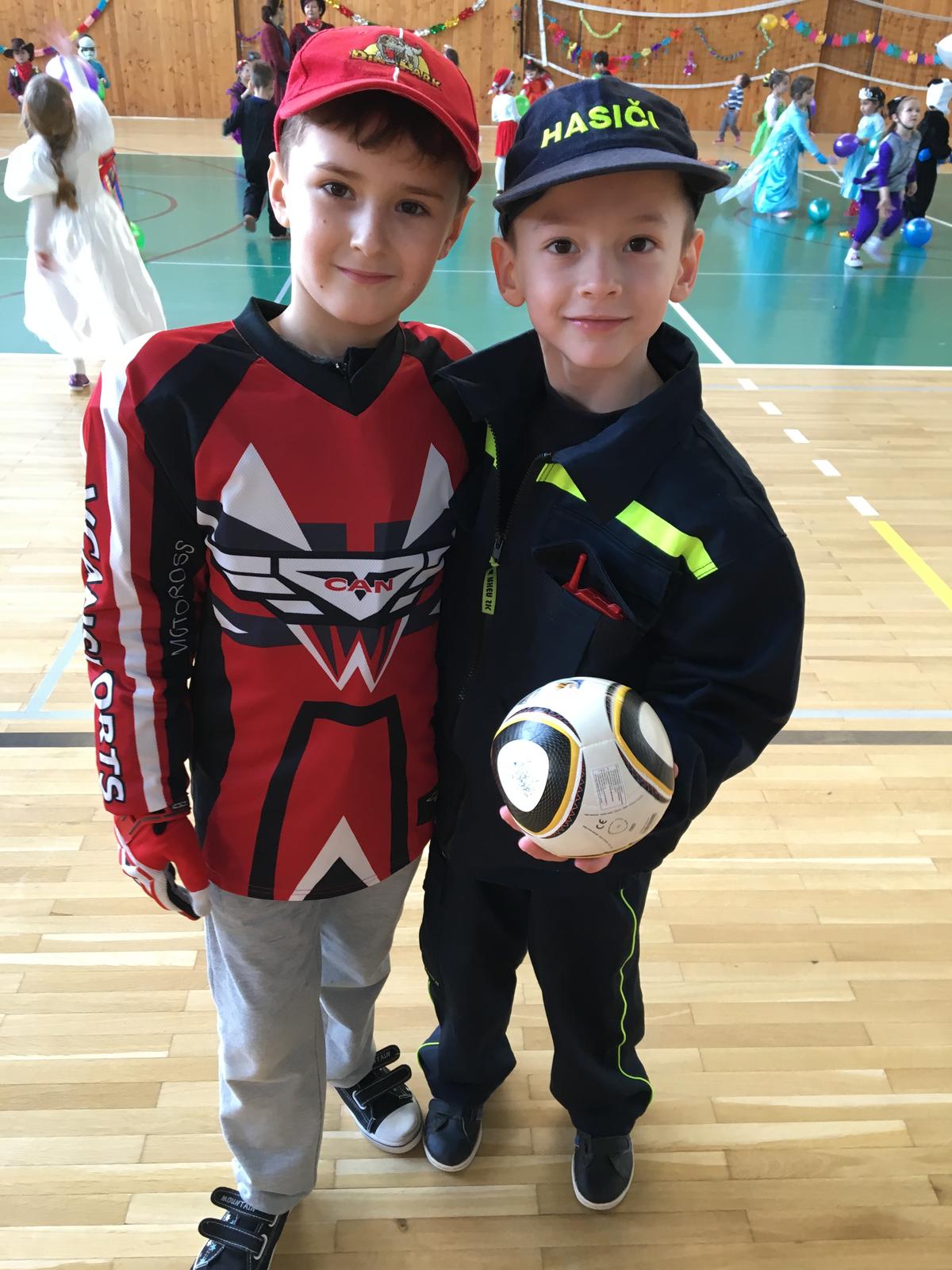 Aj my sme mali v škôlke karneval- Tobi bol futbalista a Sebi samozrejme hasič ako starký (sú spolu na fotke)