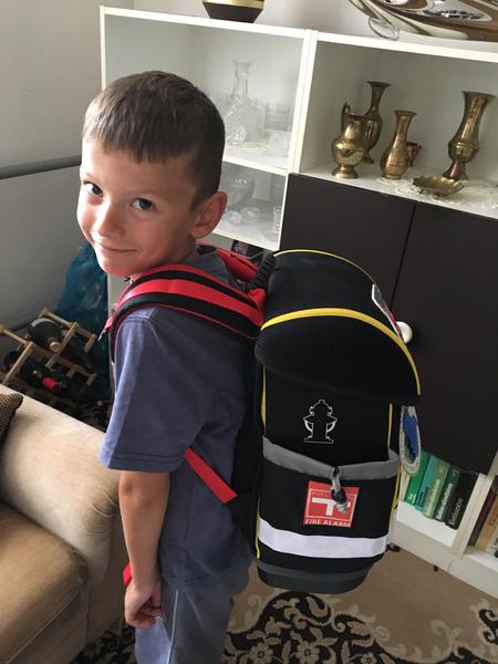 Sebi dostal teraz cez víkend tašku-od sestry a švagra, samozrejme hasicsku, tak sa vytešuje ☺️.