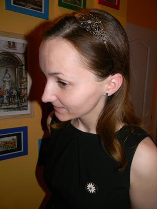 @kicsike13@kabba Tu sooom a dokonca so svojimi 25timi vlaskami rozpustenymi :-D Petko mi urobil aj detail na celenku, nausnicky a brosnicku :-) Nie je to velky rozdiel ako minule, len mam topanocky, ale skusim pohladat este opasocek vo farbe ako topanocky a mozno aj svetrik ruzovy by nebol odveci :-)